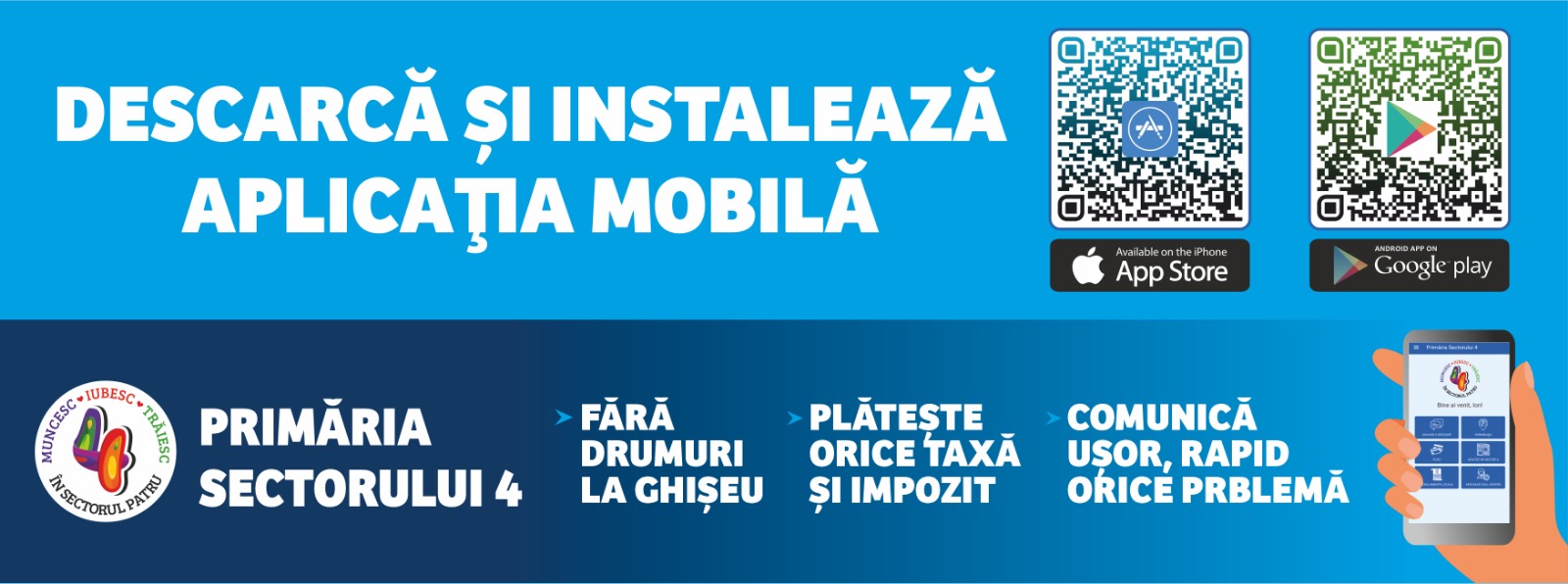 Aplicația Primăriei Sector 4 – Android: https://play.google.com/store/apps/details?id=ro.ps4.primariasector4app
